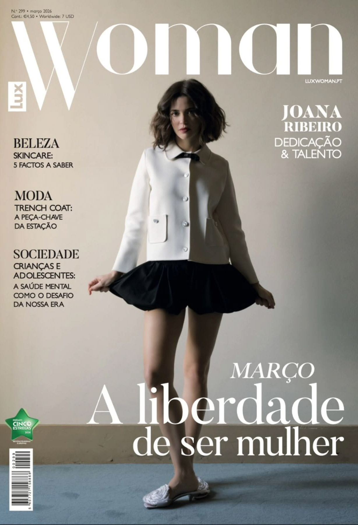 Pour une séance magazine de Lux Woman, Joana Ribeiro traverse les pièces comme une héroïne trop calme pour être vraiment innocente, entre lumière douce et silence très étudié.