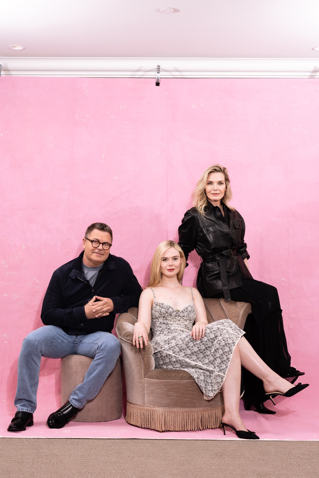 Pour LA Times, Elle Fanning et Michelle Pfeiffer posent dans un décor rose poudré qui ressemble moins à un studio qu’à un salon de pouvoir feutré.