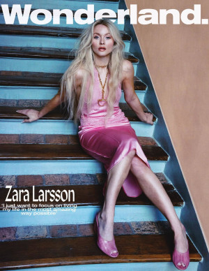 Zara Larsson en shooting Wonderland, reine froide des murs roses fatigués