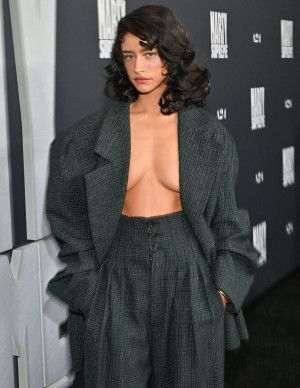 (38 photos)Elle arrive torse nu sous un tailleur XXL, comme si elle testait la patience du tapis rouge juste pour voir jusqu’où il cède.