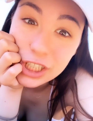 On dirait qu’elle s’entraîne pour les JO de la glisse… ou juste pour épater son compagnon.