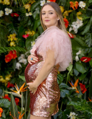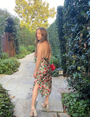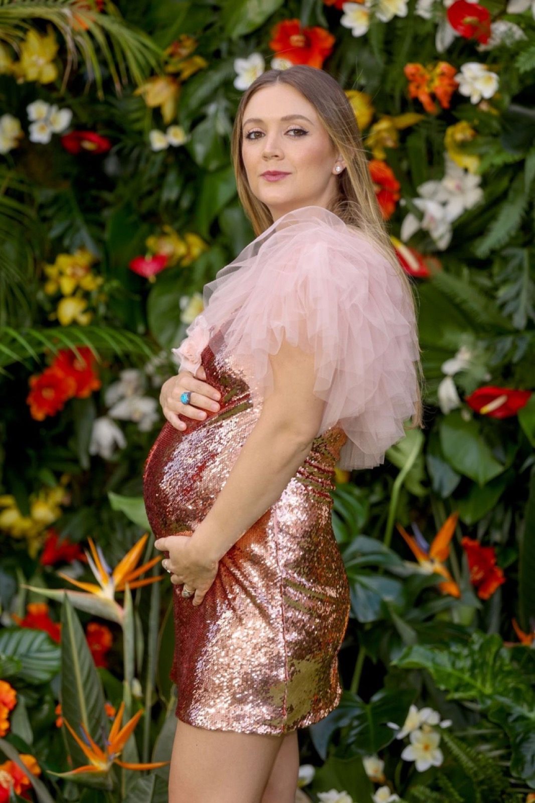 En robe fleurie digne d’un jardin ambulant, Billie sème des pétales de sarcasme sur le tapis rouge, comme si le glamour avait besoin d’un arroso...