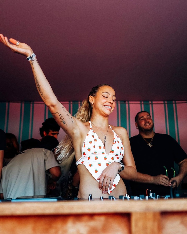 Entre 2022 et 2025, elle alterne résidences et week-ends club à Las Vegas, enregistre des Video Sets “sunset” (Côte californienne), et enchaîne des shootings swim/athleisure pour White Fox Boutique, Oh Polly et séries yoga-fitness pour ALO Yoga. Côté collabs créatrices, elle réalise des Gym & Swim Collabs à L.A. avec Sommer Ray, et des capsules social-first avec Jordyn Jones (dance & styling), tout en croisant la scène influence de West Hollywood avec Katie Sigmond et Indiana Massara. Entre mode, musique et entrepreneuriat, sa signature reste précise : sets captés en golden hour, éditos swim au cordeau, et branding olfactif Smoke Roses pensé comme un rituel.