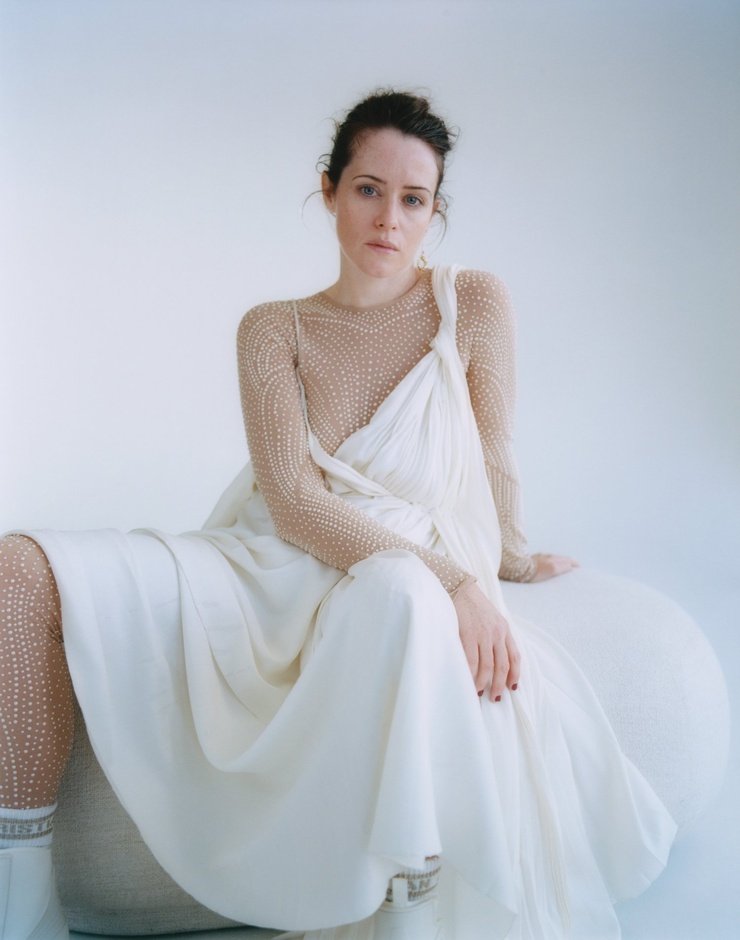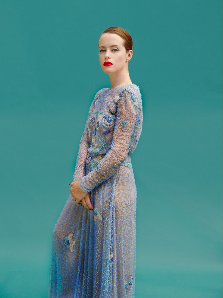 Claire Foy allongée dans l’herbe pour Harper’s Bazaar UK, luxe compris