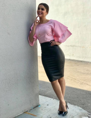 (6 photos)Sa robe latex rouge brille tellement qu’on dirait qu’elle vient d’être déballée comme un cadeau trop impatient.
