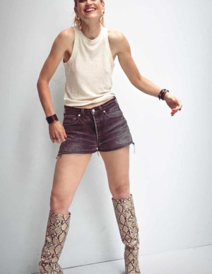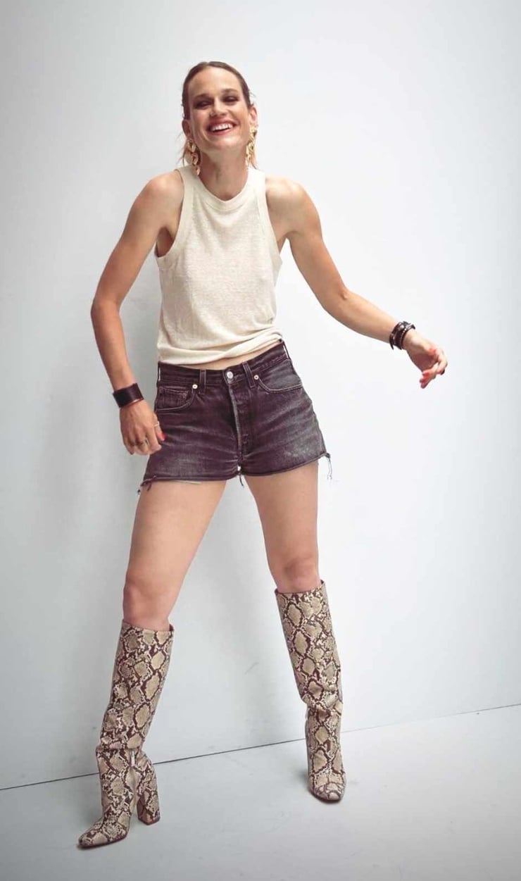 (8 photos)Avec cette coiffure acrobatique et ces talons à roulettes, on dirait qu’elle prépare un braquage stylé du rayon mode.
