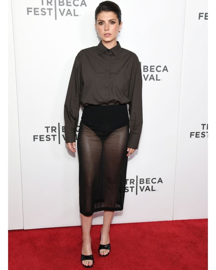 (19 photos)Elle arrive sous plastique, jambes calmes et regard sec, comme si la météo était morale, et le tapis rouge, soudain, manque clairement d’air.