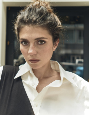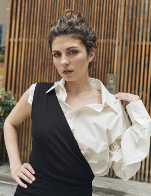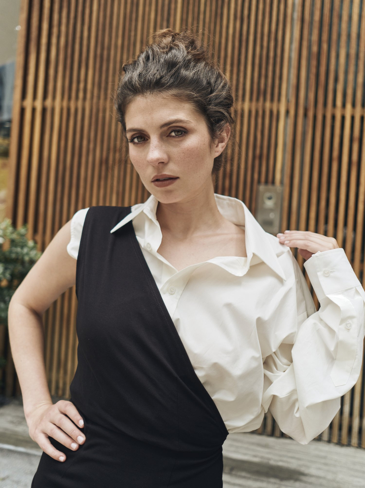 Virginie Efira en couverture Madame Figaro, sage au-dessus, trouble en bas
