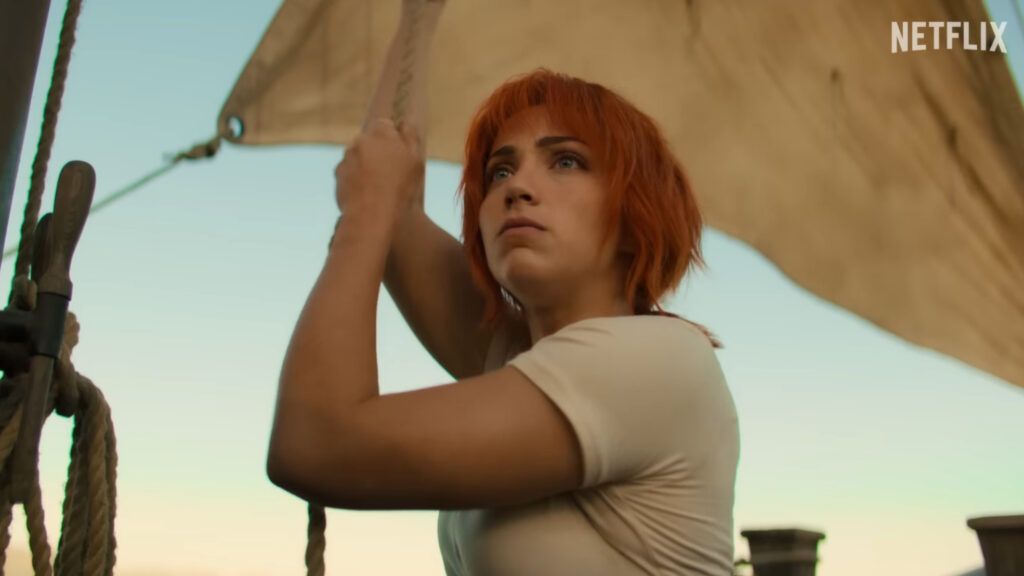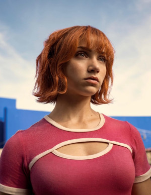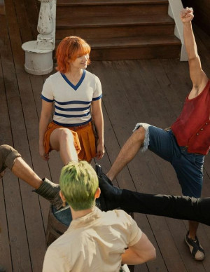 Elle confirme avec One Piece (2023–), tourné en grande partie aux Cape Town Film Studios (Afrique du Sud), où son interprétation de Nami conjugue malice, précision comique et émotion contenue ; la série devient un phénomène international et impose son nom dans le period-adventure contemporain. En parallèle, elle bifurque vers le thriller historique avec Hunters (2023), où son apparition partage l’affiche avec la présence tranchante de Jennifer Jason Leigh. Entre univers de genre et drames choraux, Emily Rudd avance par choix nets et datés, cultivant une trajectoire cohérente — moderne, glamour, intensément lisible à l’écran.