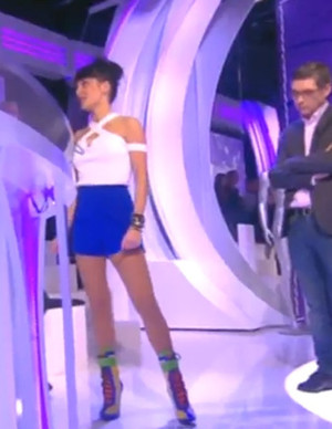 (8 photos)Avec cette coiffure acrobatique et ces talons à roulettes, on dirait qu’elle prépare un braquage stylé du rayon mode.