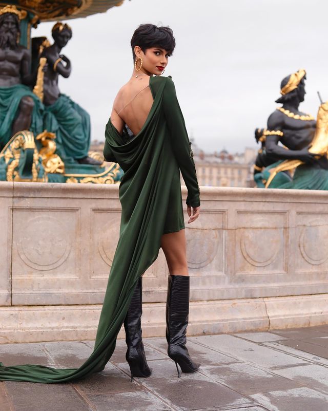 Habillée dans une tenue qui semblait avoir été tissée à partir des fils du cosmos, elle a marché sur le tapis rouge comme une exploratrice de l'...
