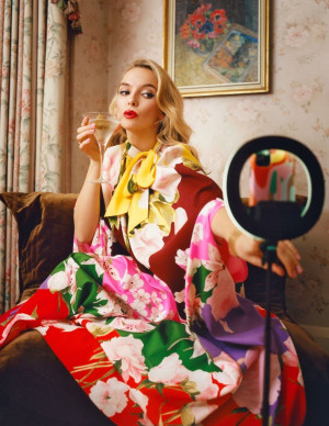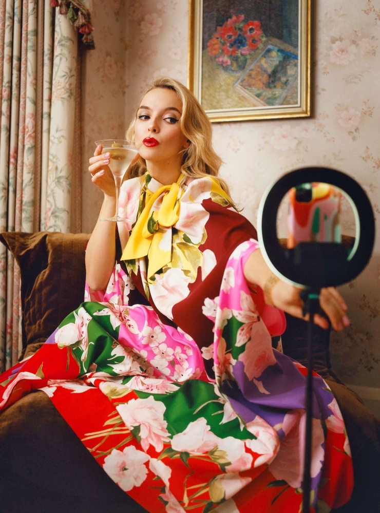 Jodie Comer sur GQ Heroes UK : entre sa pose de star en noir avec jarretelle et sa caméscope sur le lit, elle joue les héroïnes fatales !