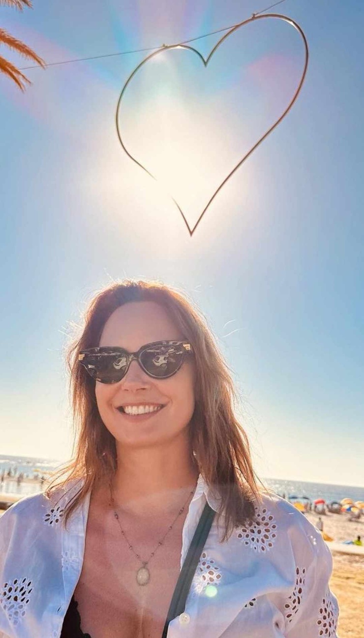 (12 photos)Avec ce parasol géant, elle a l’air de négocier un contrat météo à chaque pas sur le sable.