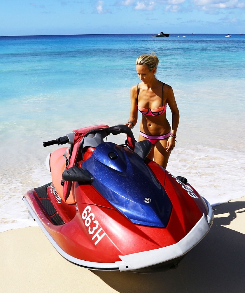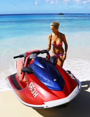 Sydney Sweeney en bikini blanc en virée jetski chez elle en Floride