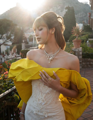 Avec ses joues roses façon poupée coquine et son short microscopique, Lisa transforme la pyramide du Louvre en décor d’un conte sexy et délicieu...