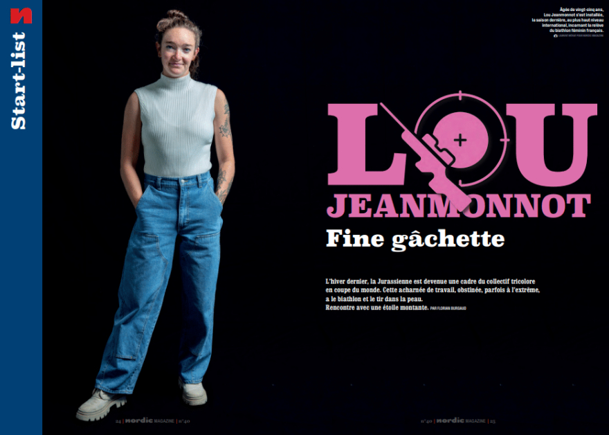 Lou Jeanmonnot est une biathlète française formée dans le massif du Jura. Elle débute le ski de fond très jeune avant de se spécialiser dans le biathlon, discipline combinant endurance et tir de précision — courir vite puis respirer calmement, un concept pas toujours naturel. Elle progresse dans les circuits juniors avant d’intégrer l’équipe de France B puis l’équipe A au début des années 2020.