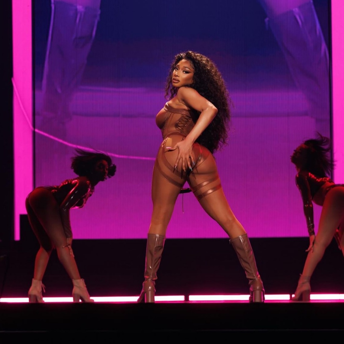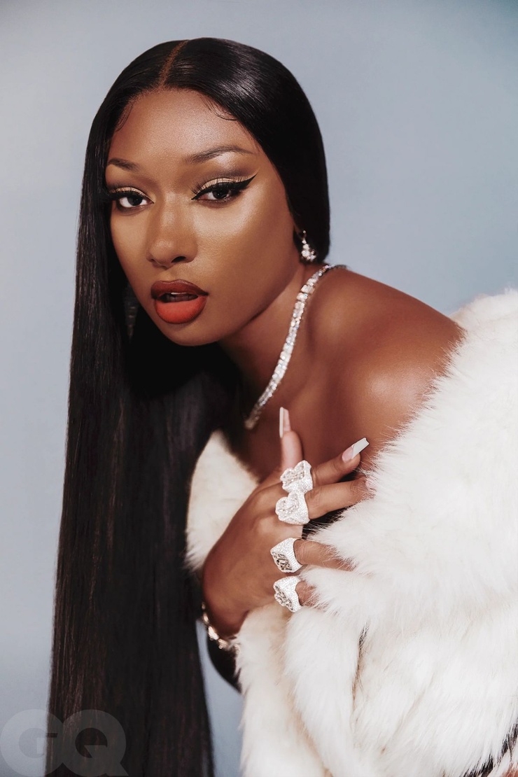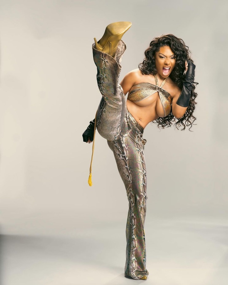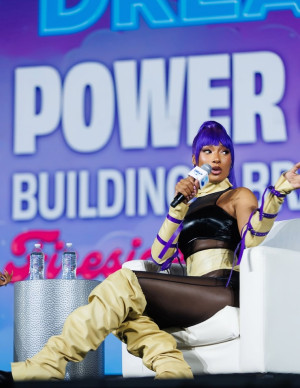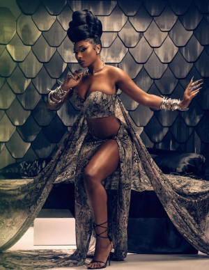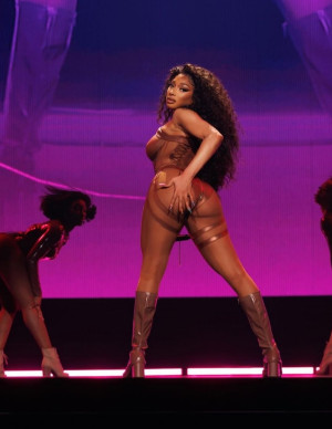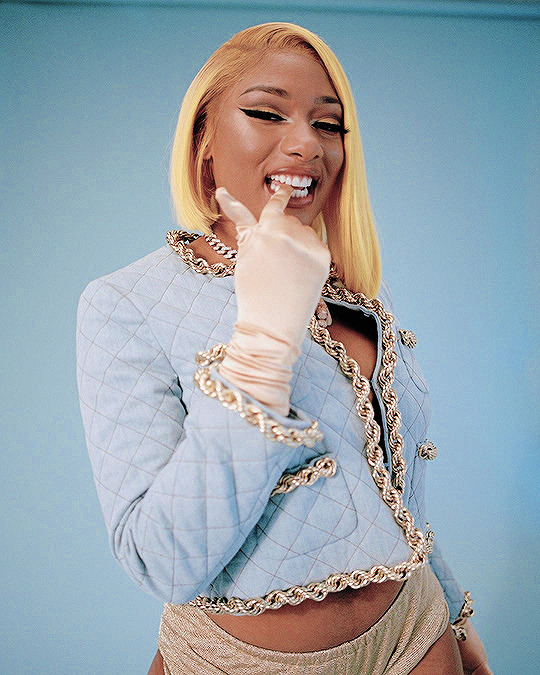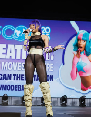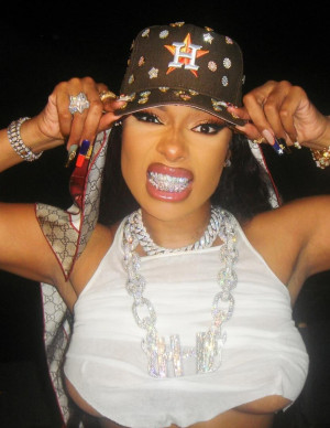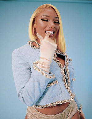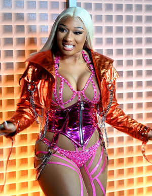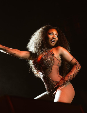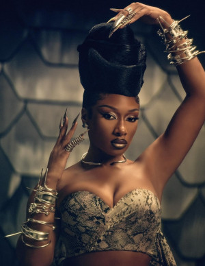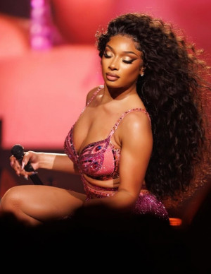 Megan Thee Stallion est une rappeuse, chanteuse et autrice-compositrice américaine. Élevée à Houston, elle découvre le rap à 14 ans et se lance dans la musique après ses études à la Texas Southern University. En 2018, son EP Tina Snow la propulse sur la scène hip-hop. Son single Savage (remix avec Beyoncé) et WAP avec Cardi B, tous deux numéro 1 au Billboard Hot 100 en 2020, consacrent sa notoriété.