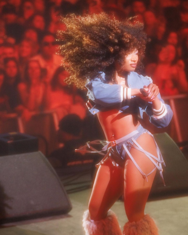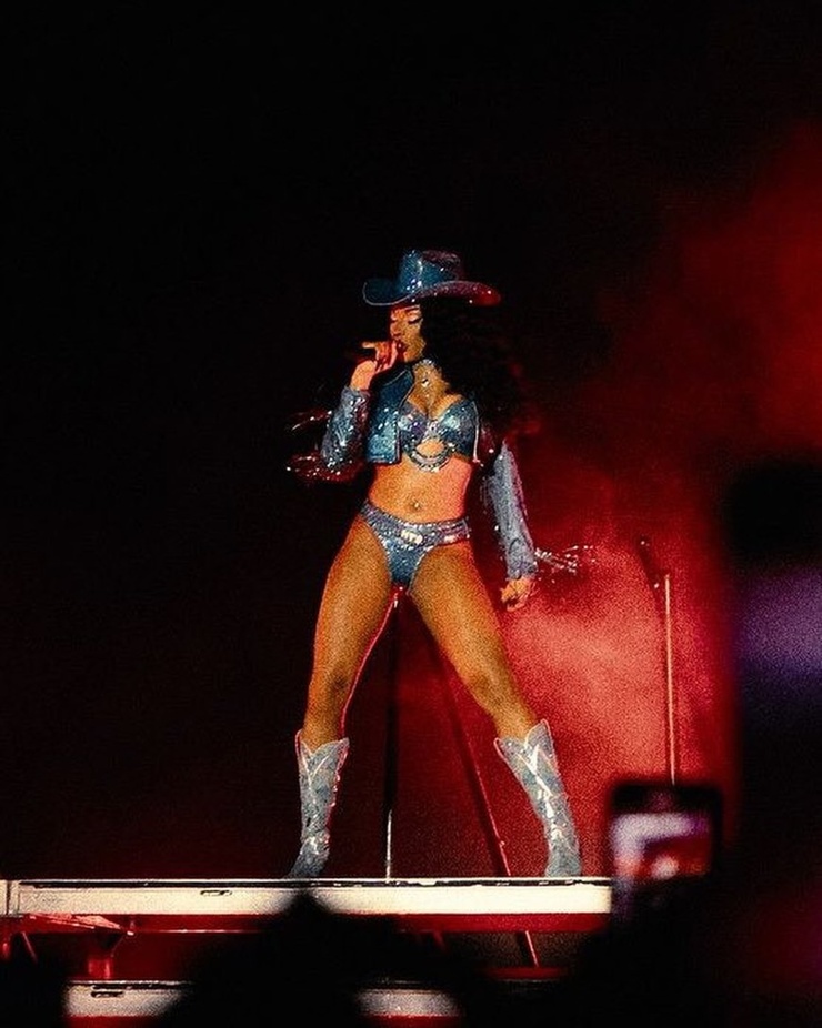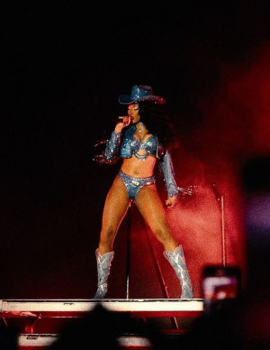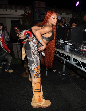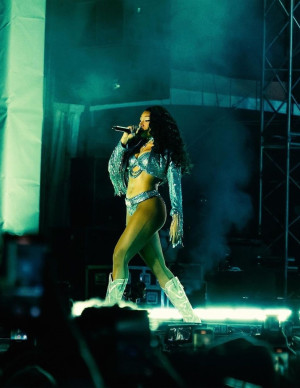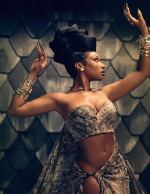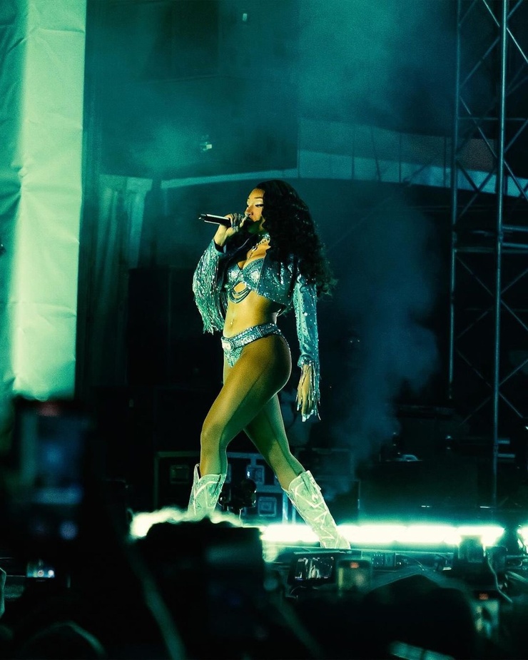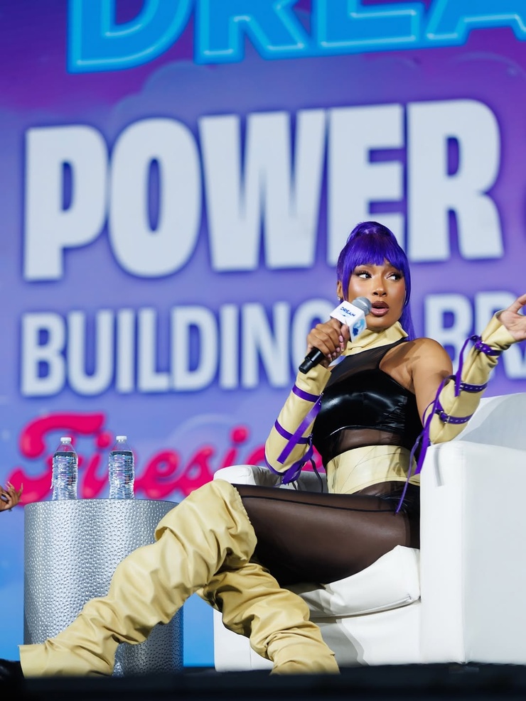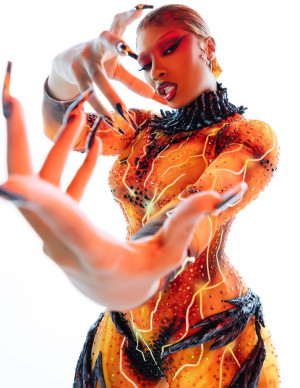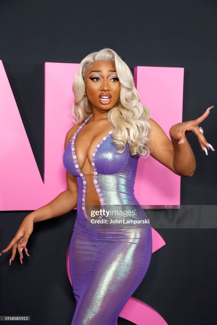 Megan Thee Stallion est une rappeuse, chanteuse et autrice-compositrice américaine. Élevée à Houston, elle découvre le rap à 14 ans et se lance dans la musique après ses études à la Texas Southern University. En 2018, son EP Tina Snow la propulse sur la scène hip-hop. Son single Savage (remix avec Beyoncé) et WAP avec Cardi B, tous deux numéro 1 au Billboard Hot 100 en 2020, consacrent sa notoriété.