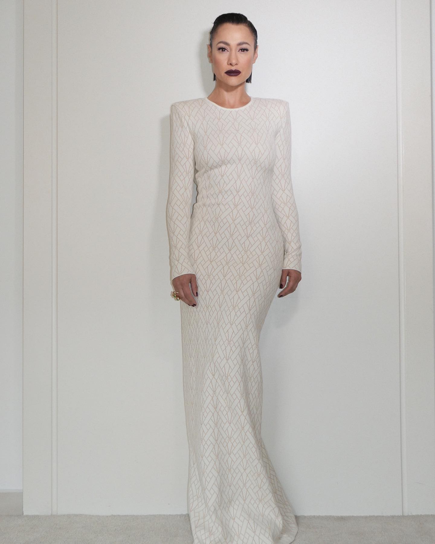 (8 photos)Même son regard smoky a l’air de dicter la météo, tellement elle semble prête à faire neiger du glamour sur Bel Air.