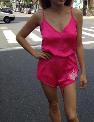 (26 photos)Devant les statues très stoïques, elle arrive en nuisette chic… même le logo géant semble hésiter entre applaudir ou demander un câlin.