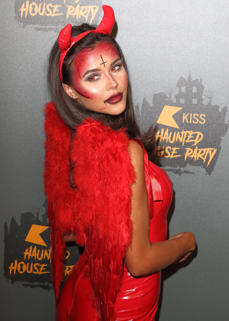(6 photos)Sa robe latex rouge brille tellement qu’on dirait qu’elle vient d’être déballée comme un cadeau trop impatient.