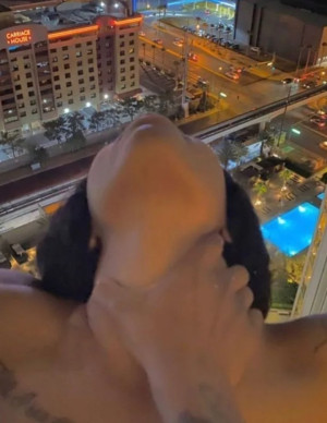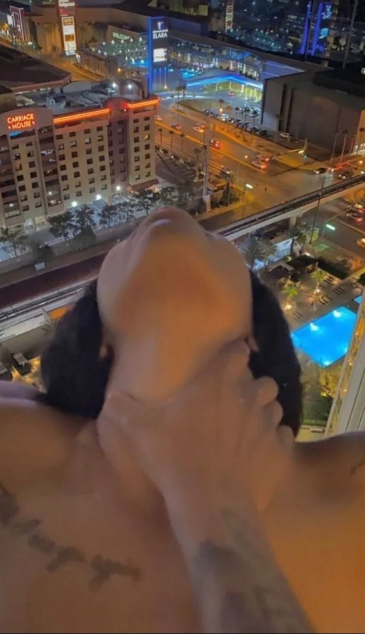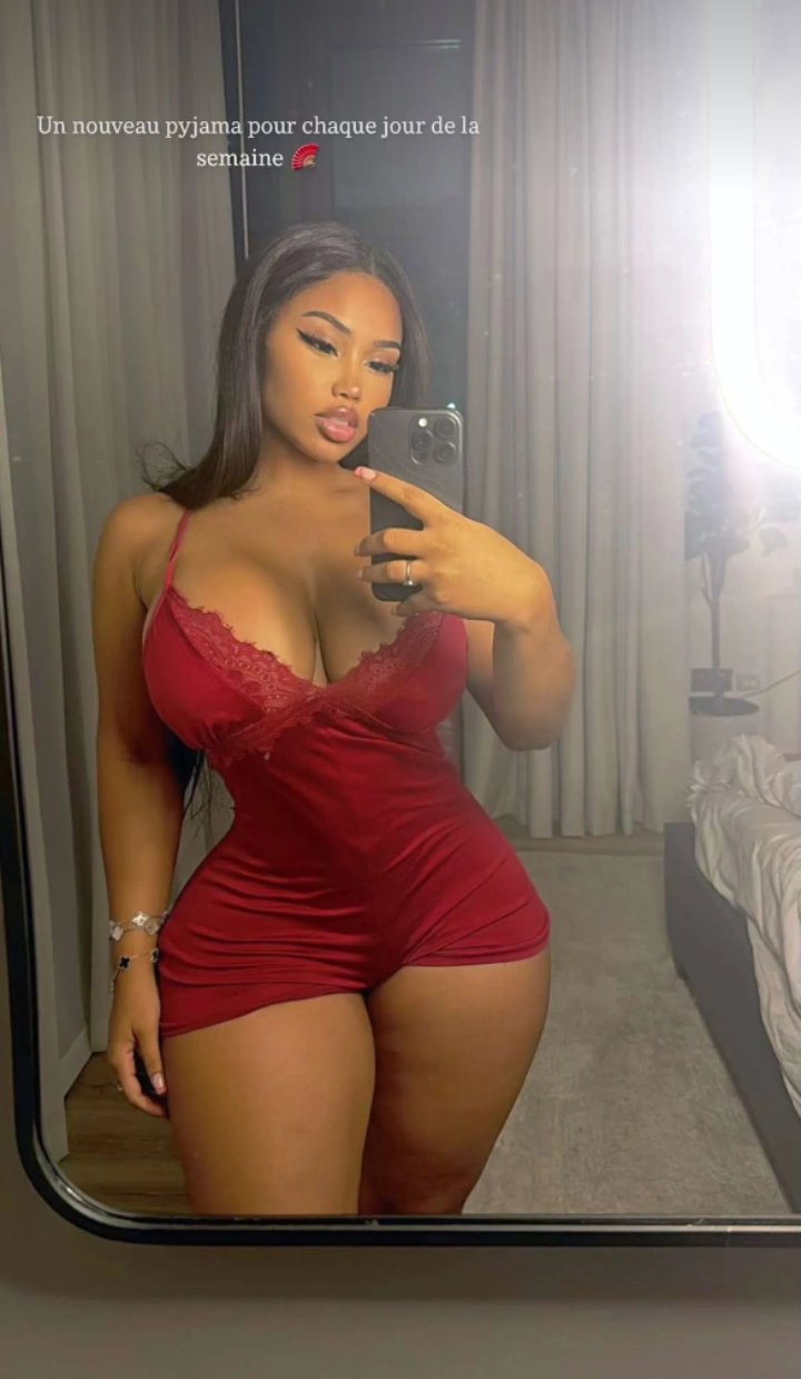 (6 photos)Sa robe latex rouge brille tellement qu’on dirait qu’elle vient d’être déballée comme un cadeau trop impatient.