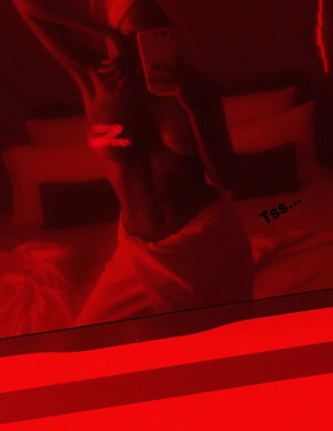 (6 photos)Sa robe latex rouge brille tellement qu’on dirait qu’elle vient d’être déballée comme un cadeau trop impatient.